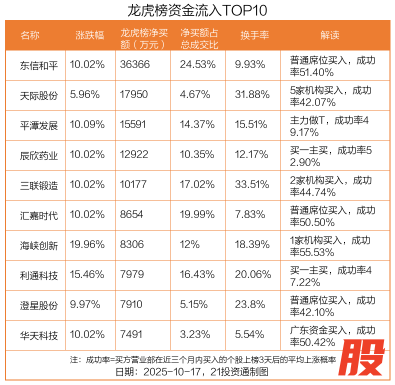 (原标题:3.64亿资金抢筹东信和平,机构狂买天际股份丨龙虎榜)